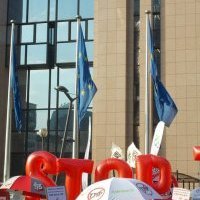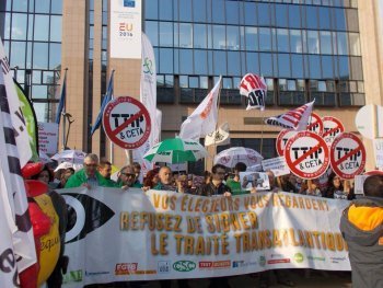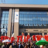 Vivre Ensemble et Entraide et Fraternité se sont joints au rassemblement devant le Conseil européen à l’occasion du Conseil des Ministres du Commerce.