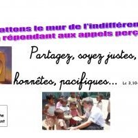 Comme action symbolique, de nombreuses paroisses se sont appropriées le geste proposé dans lesPistes pour un Avent solidaire. Elles ont bâti un mur, représentant ce qui nous enferme, ce qui nous isole des autres, ce qui fait obstacle à la rencontre et à la générosité.