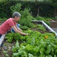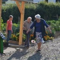 Mais Patchwork, c’est aussi un jardin. Après avoir fait la vaisselle, nous parcourons quelques centaines de mètres sur un Ravel bucolique et nous voici accueillis par l’épouse de Paul, Marlene, qui gère le potager communautaire. Elena, Mauricienne, est là aussi, de même qu’Ursula, qui nous explique qu’ayant déménagé dans un appartement, elle retrouve ici le plaisir du jardinage qui lui manquait. Ici aussi, l’ouverture est le souci principal. Pas de ghetto ni d’étiquette. On s’attarderait bien encore dans ce lieu plein de légumes et de fleurs, mais l’heure tourne et la route est encore longue pour regagner nos pénates.