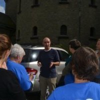 Après une petite introduction au contexte Saint-Vithois, proposée par Dirk sur la place de l’église, le groupe se dirige vers Patchwork, une maison de quartier ouverte à tous. A peine a-t-on poussé la porte et salué notre hôte, Paul, que nous sommes mis au parfum : ici, tout le monde met la main à la pâte ! Peter s’occupe donc de sortir les verres, d’autres remplissent les carafes avant de prendre place autour de la grande table.
