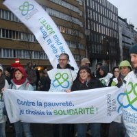 Près de 3000 manifestants (une cinquantaine autour des drapeaux Entraide & Fraternité / Vivre Ensemble) de différents pays européens ont mis feux, couleurs et musiques tout autour de l’espace européen Schuman.
