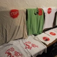 Une septantaine de jeunes et moins jeunes se sont rassemblés ce samedi pour une conférence débat sur le traité transatlantique. Ils étaient plus nombreux encore, dont de nouvelles têtes, pour la soirée créativité qui a suivi : t-shirts, calicots, chanson, une vidéo à diffuser sur internet...