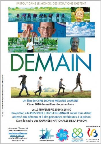 Dans ce cadre Vivre Ensemble, l’Equipe Sociale de Leuze et l’Aumônerie des prisons ont organisé une projection du film Demain de Cyril Dion, suivie d’un débat encadré par un modérateur, le samedi 19 novembre à 16h30, à la prison de Leuze