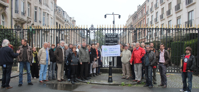 Notre voyage continu au siège de la banque Hong Kong & Shangai banking corporation (HSBC) Bruxelles, connue mondialement dans des affaires de blanchiment d’argent. Dernier arrêt chez Price Waterhouse Coopers (PWC), un des « Big four » avec Deloitte & Touche, KPMG et Ernest & Young. Ce cabinet d’audit et de consultance a mis au point des montages fiscaux permettant à des multinationales d’échapper presque complétement à l’impôt. PWC est un des acteurs essentiels de notre visite guidée, qui s’est achevée au Vicariat rue de la linière.