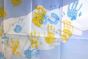 Après avoir montré l’affiche vierge aux enfants, nous leur avons demandé ce qu’ils y voyaient et ce que ses mains pouvaient vouloir dire.