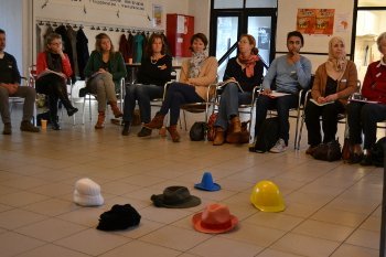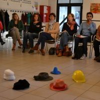 Au menu : l’austérité vécue dans les associations. Pour aborder ce sujet… austère, plusieurs chapeaux de différentes couleurs attendent au milieu du cercle :