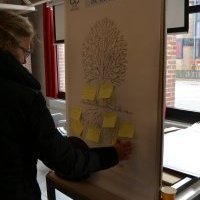 Enfin, le chapeau vert, vert comme le feuillage de l’Arbre du vivre-ensemble, outil d’animation proposé par Vivre Ensemble en 2015. L’arbres s’est couvert de feuilles en forme de post-it pour décrire qui est important pour favoriser le vivre ensemble dans les associations, autour de soi, dans la société.