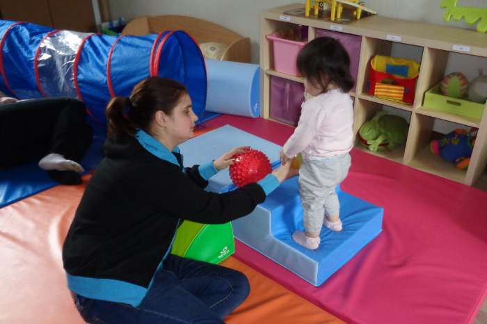 « J’aime bien l’ambiance de La Maison Source, ma flle aime bien venir, elle rencontre d’autres enfants car elle n’a pas accès aux crèches, ça lui permet d’avoir accès à des activités de son âge (la dernière fois, on a fait de la plasticine). Ça renforce les liens avec ma flle, ce sont des petits moments privilégiés. À la maison, elle ne dormirait pas comme ça sur moi, quand je rentre, je suis apaisée. Venir, cela m’a aussi permis de voir comment mettre mon enfant à la sieste, de comment faire les petits pots… »
