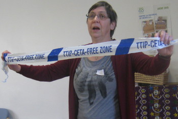Après le repas, chaque groupe a rendu compte de ses échanges… le « zapping » proposé par Vivre Ensemble a joué son rôle de provocateur de débat. Un débat qui s’est centré sur l’actualité, à savoir les pauvretés, celles des réfugiés qui arrivent chez nous et celles de ceux qui sont déjà là depuis longtemps. Quelques heures avant les attentats de Paris, nous soulignions la difficulté de vivre ensemble quand des évidences telles que les droits humains ne sont plus partagées, qu’il s’agisse des terroristes ou du système néolibéral qui fait passer le droit de faire des affaires avant les droits humains.